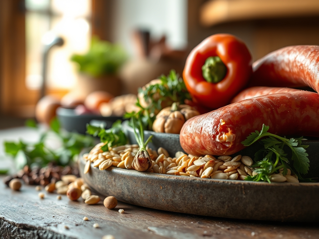 - Gewürze: Geräuchertes Paprikapulver (Pimentón de la Vera), eine Prise Cayennepfeffer und frischer schwarzer Pfeffer. Salz nur nach Bedarf, da die Salami bereits hoch konzentriert ist.